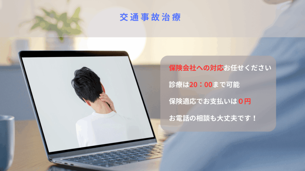 むち打ち・腰痛など、事故特有の症状を熟知した施術者が担当。